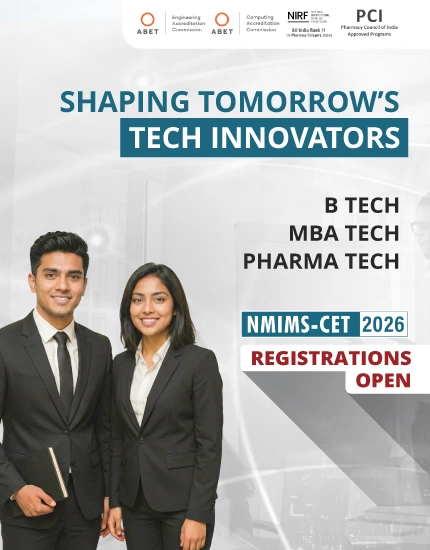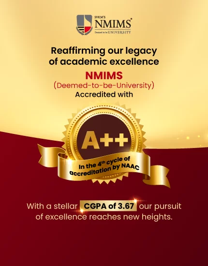 NMIMS is placed at the forefront of excellent education because of its academic quality, research focus and faculty from top national and global institutes & industries. Pursue a great career from a recognized platform. Create a better tomorrow with us.